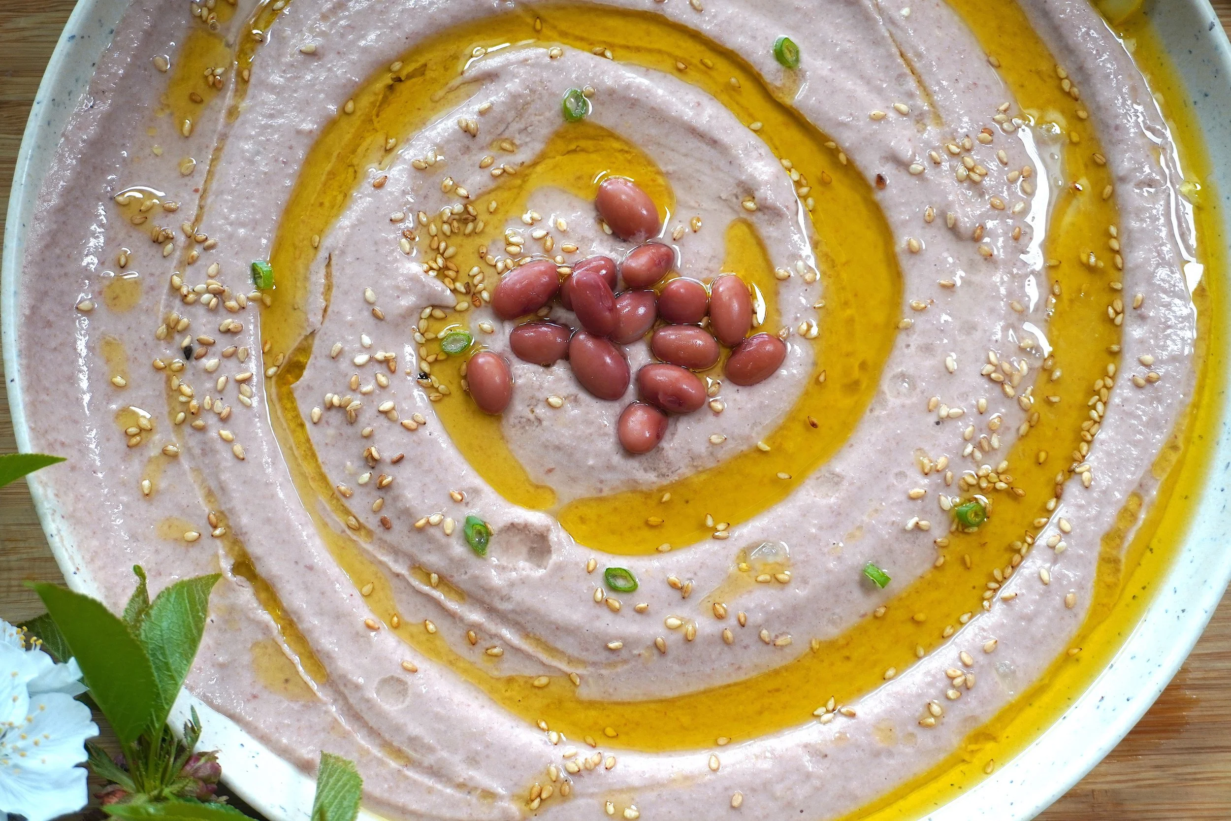 Sesame, ginger, lemon, and garlic are combined to create a creamy delicate dip with a red bean base. Think of this hummus as an East meets Middle East flavor fusion.